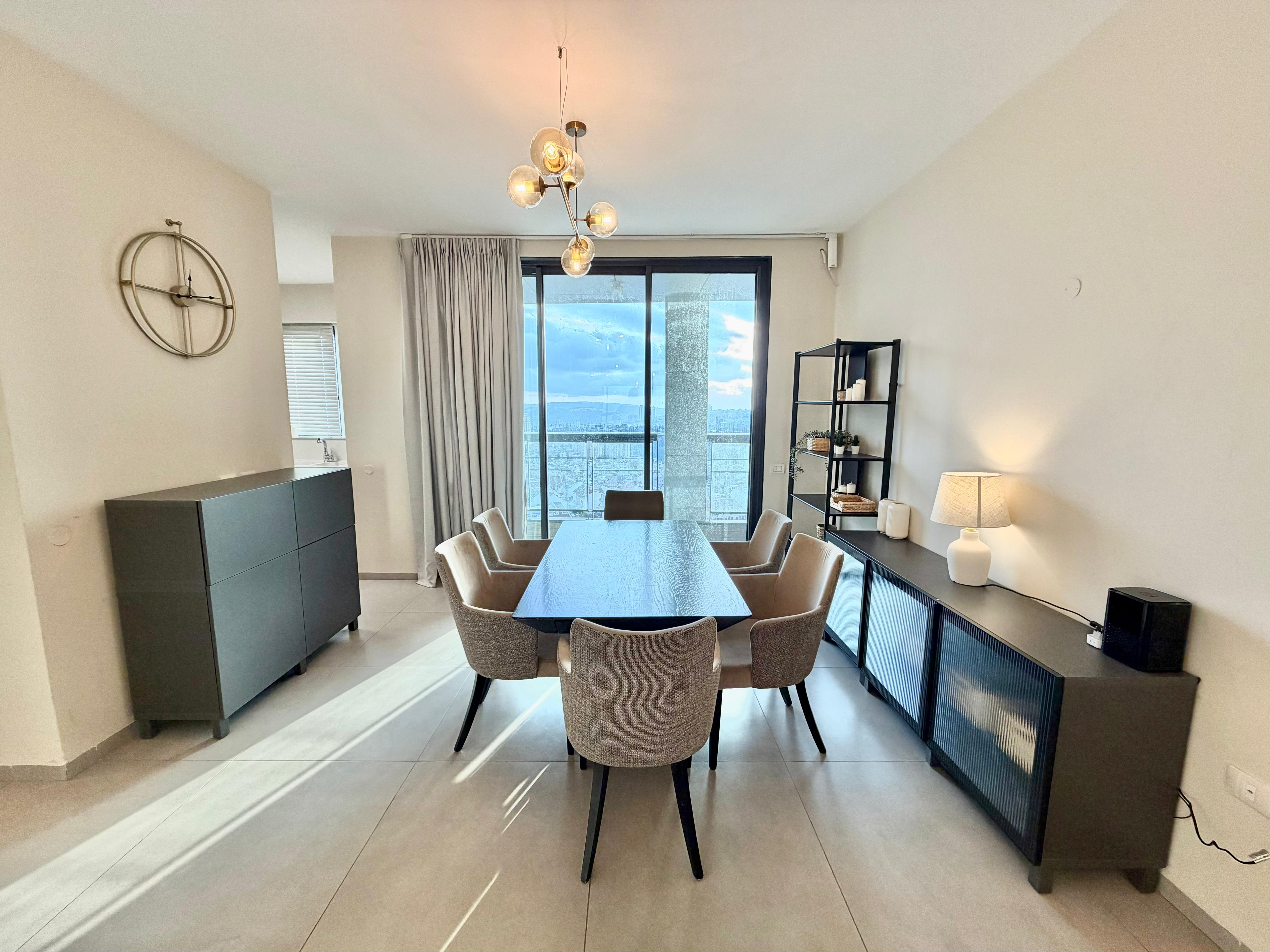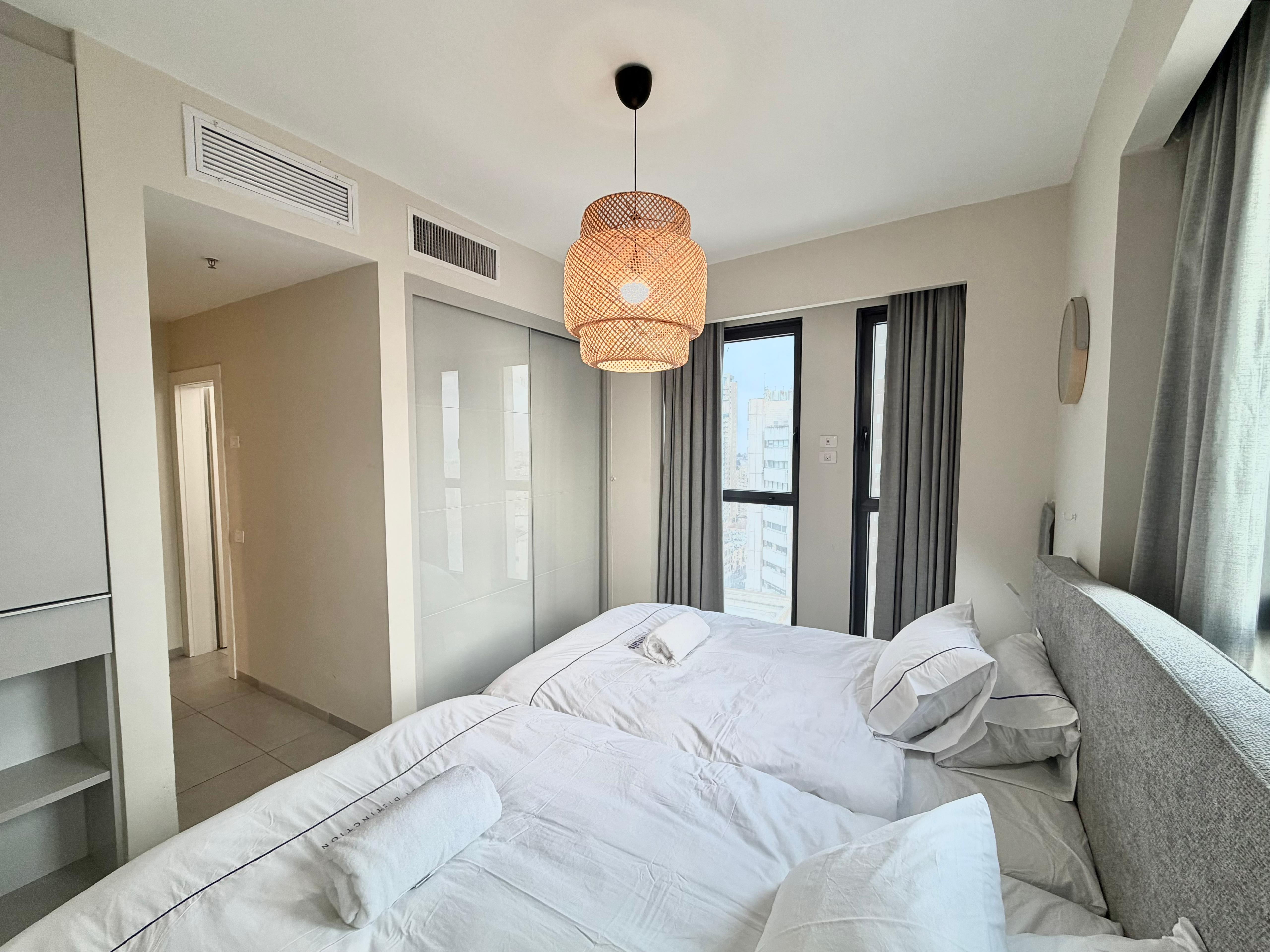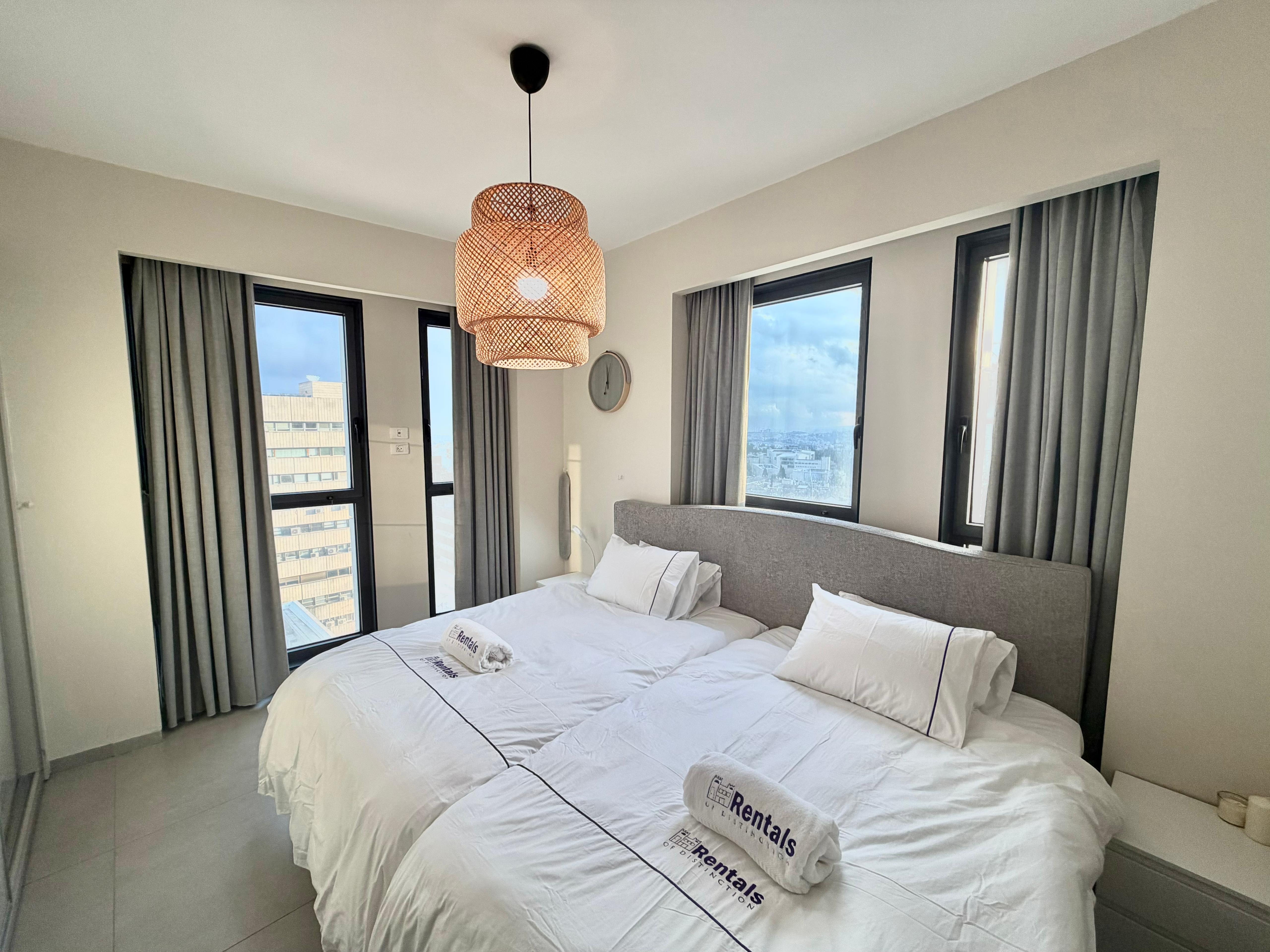 Beautiful 3 bedroom apartment located in the Jtower project in the Jerusalem city center. Beautiful luxurious lobby with underground parking. The apartment is modern and spacious with amazing views from most of the windows as well as the porch area. Why wait? Book this apartment today!