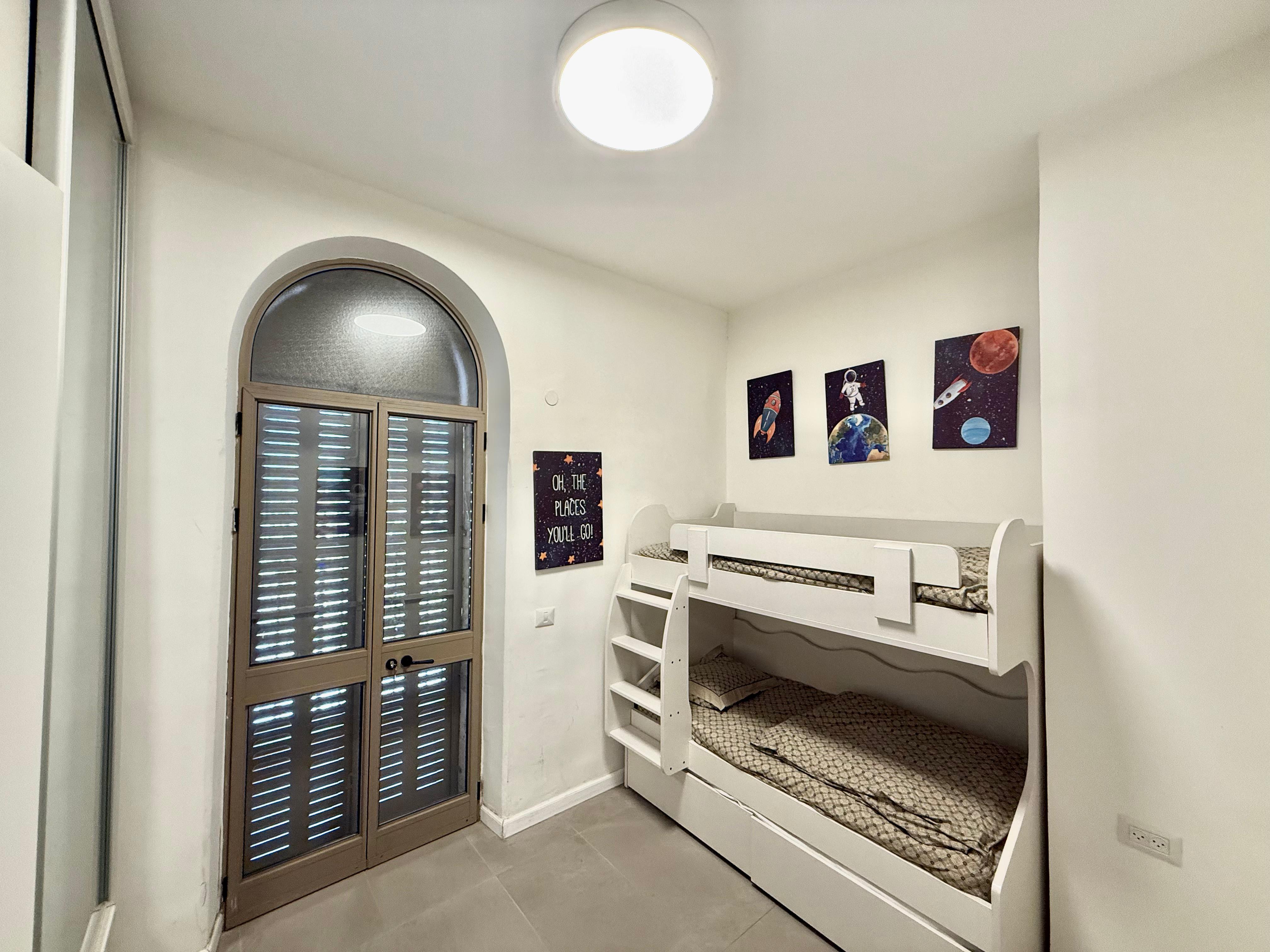 Ground FloorBunk Bed The forth bedroom has a bunkbed and closet space as well as a balcony off of the bedroom.