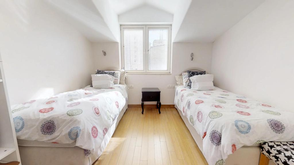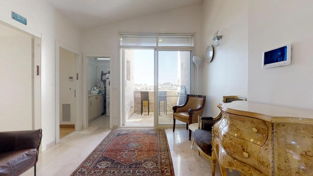 Gorgeous duplex penthouse located in the heart of Shaarei Chessed Has 5 bedrooms, an office and a security room, and 5 full bathrooms. The home comes with numerous sukkah porches, a large approximate 25 SQM sukkah porch off the living area, a cute eating sukkah porch off the kitchen eating area, and a sleeping sukkah with gorgeous views of Gan Sacker and the Knesset on the bedroom floor. The elevator opens up into both levels of the home. The property has ownership of the rooftop. It also comes with an additional storage area which is a great convenience. Reach out for a walkthrough video! Don’t miss out on the unique opportunity!!