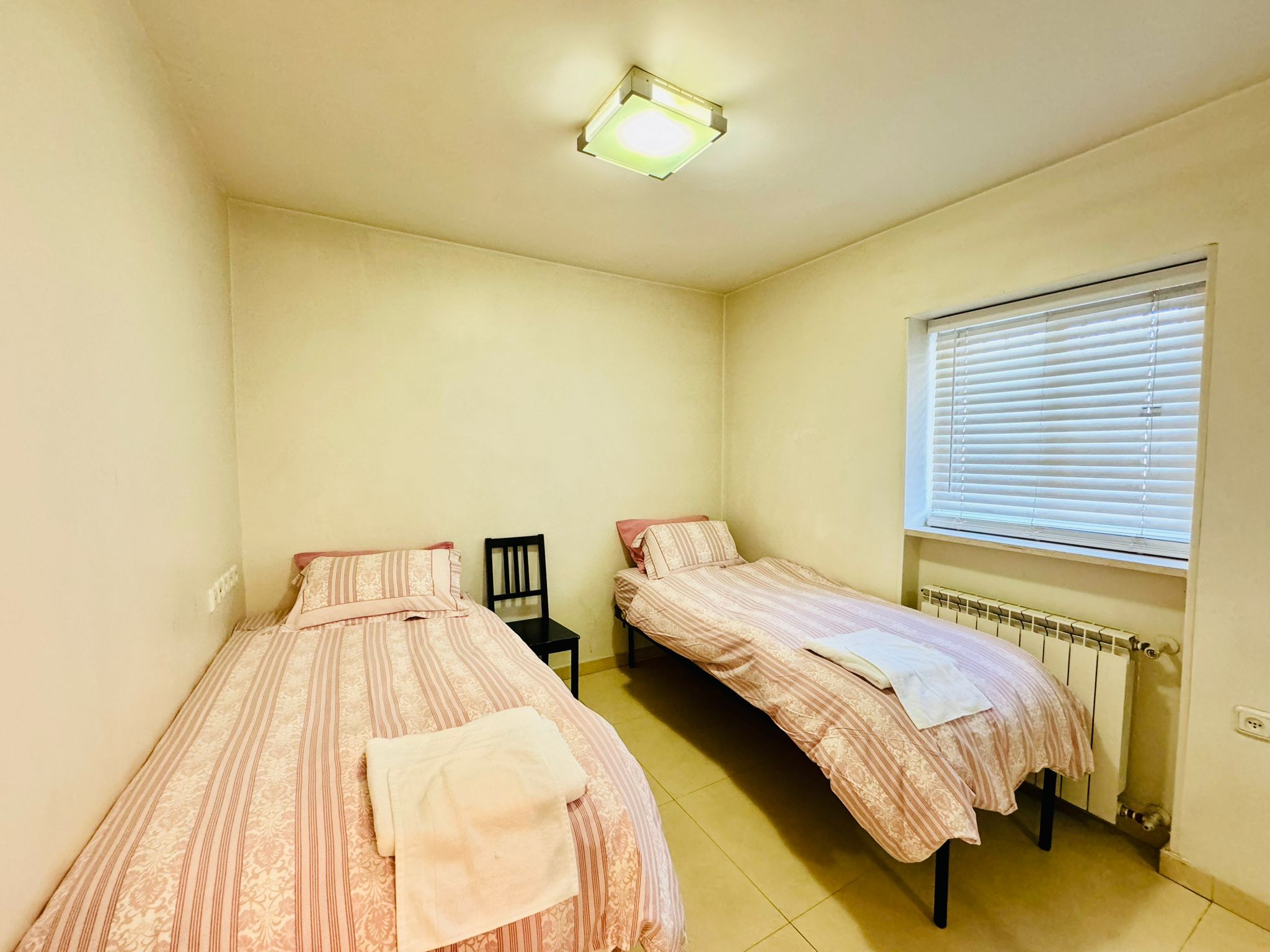 2Twin Sized Beds The Master Bedroom has 2 twin sized American style beds and comfortable high quality bedding, as well as plenty of closet space