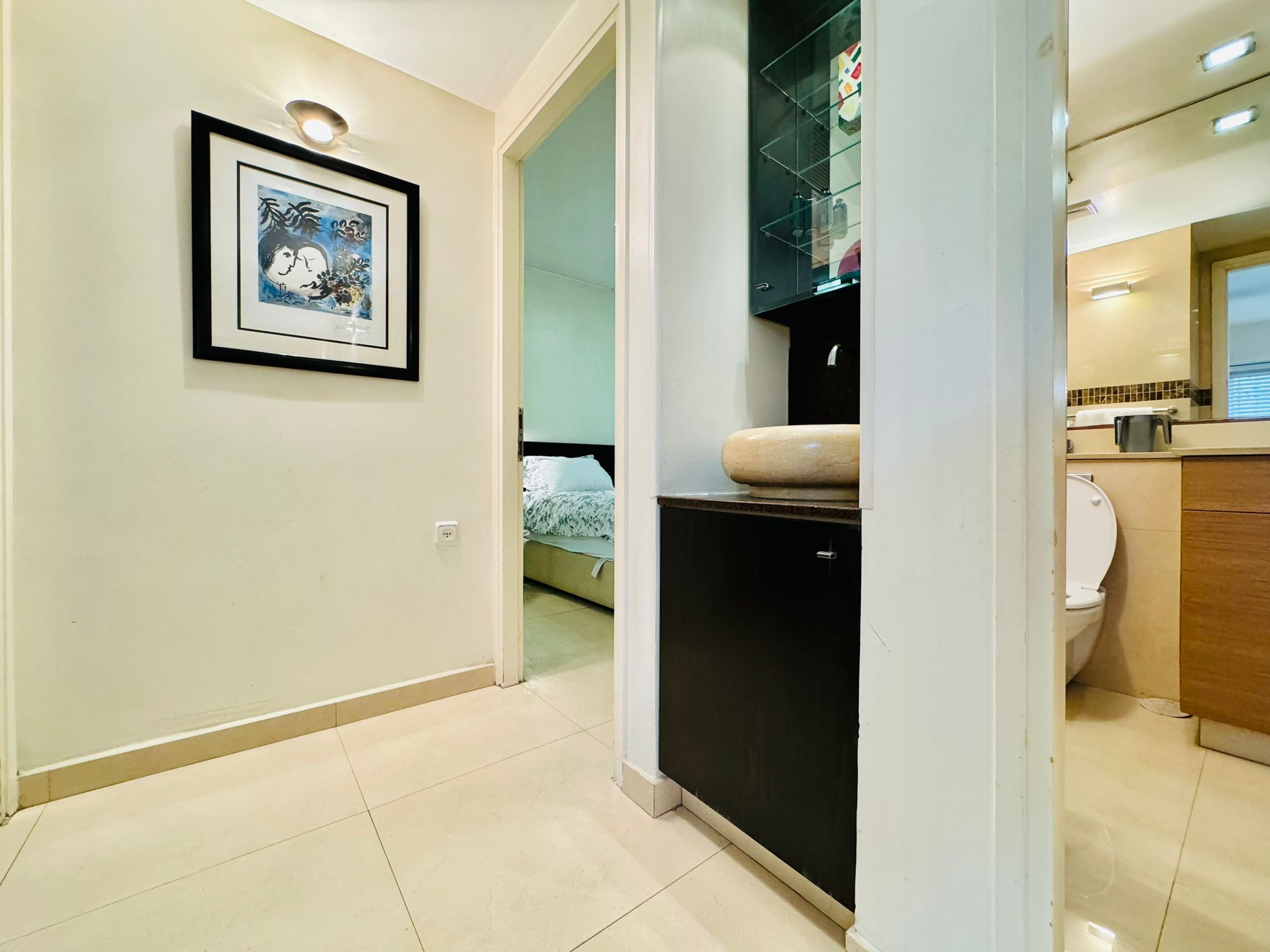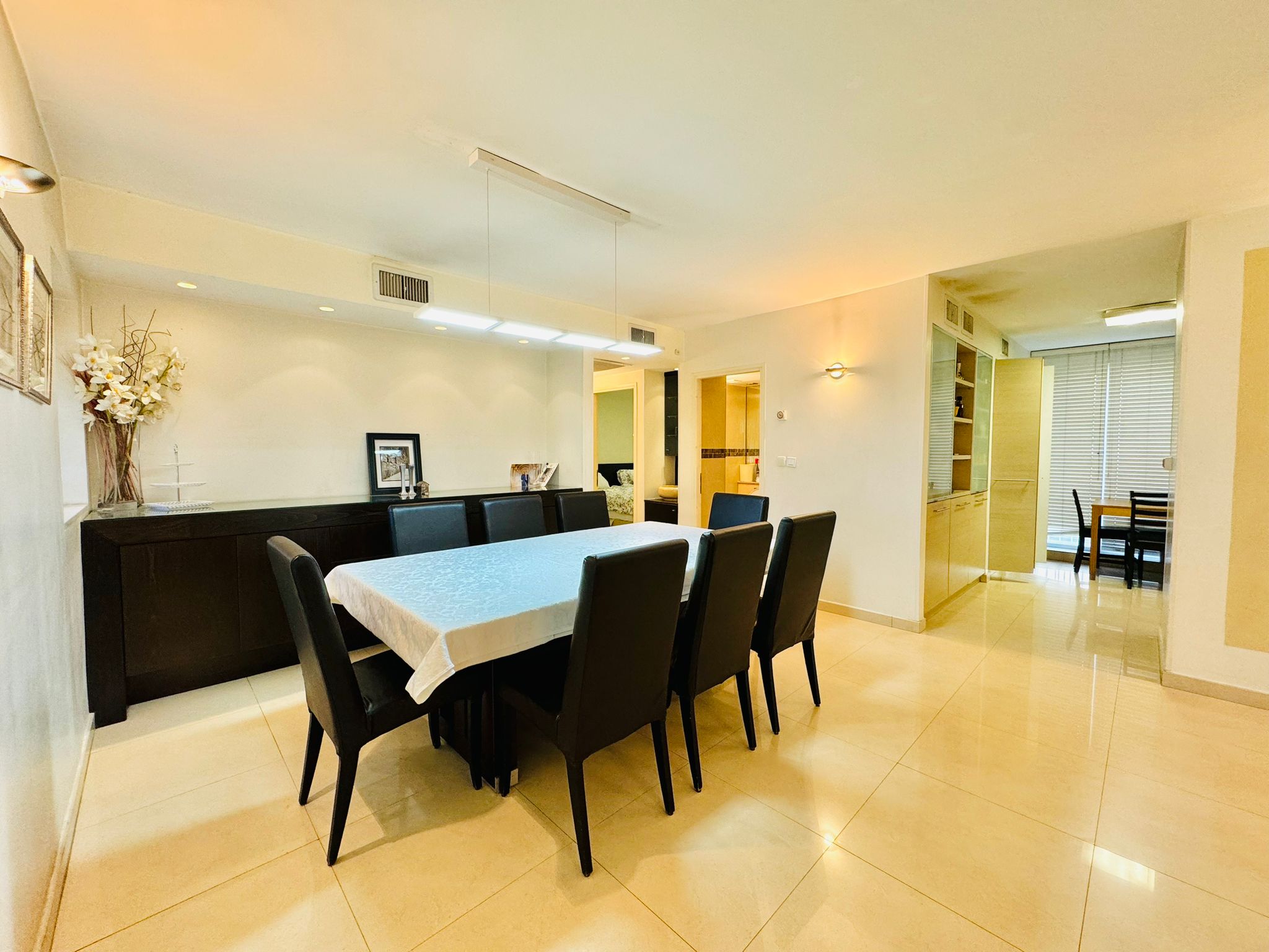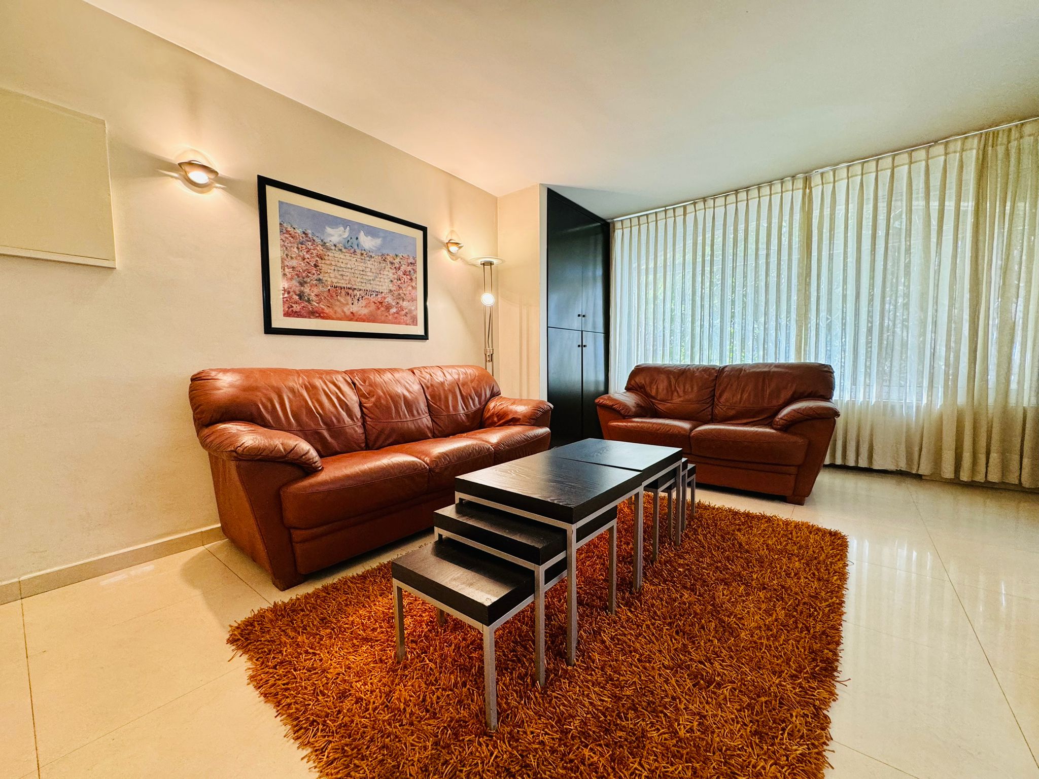 Lovely and spacious 2 bedroom apartment in the center of Ramat Eshkol. This 85 square meter apartment is comfortable, tastefully furnished and is fully equipped with everything you may need for an unforgettable trip to Israel. American style beds and bedding, super fully equipped Glatt Kosher kitchen, great dining and lounging area. Book it today!
