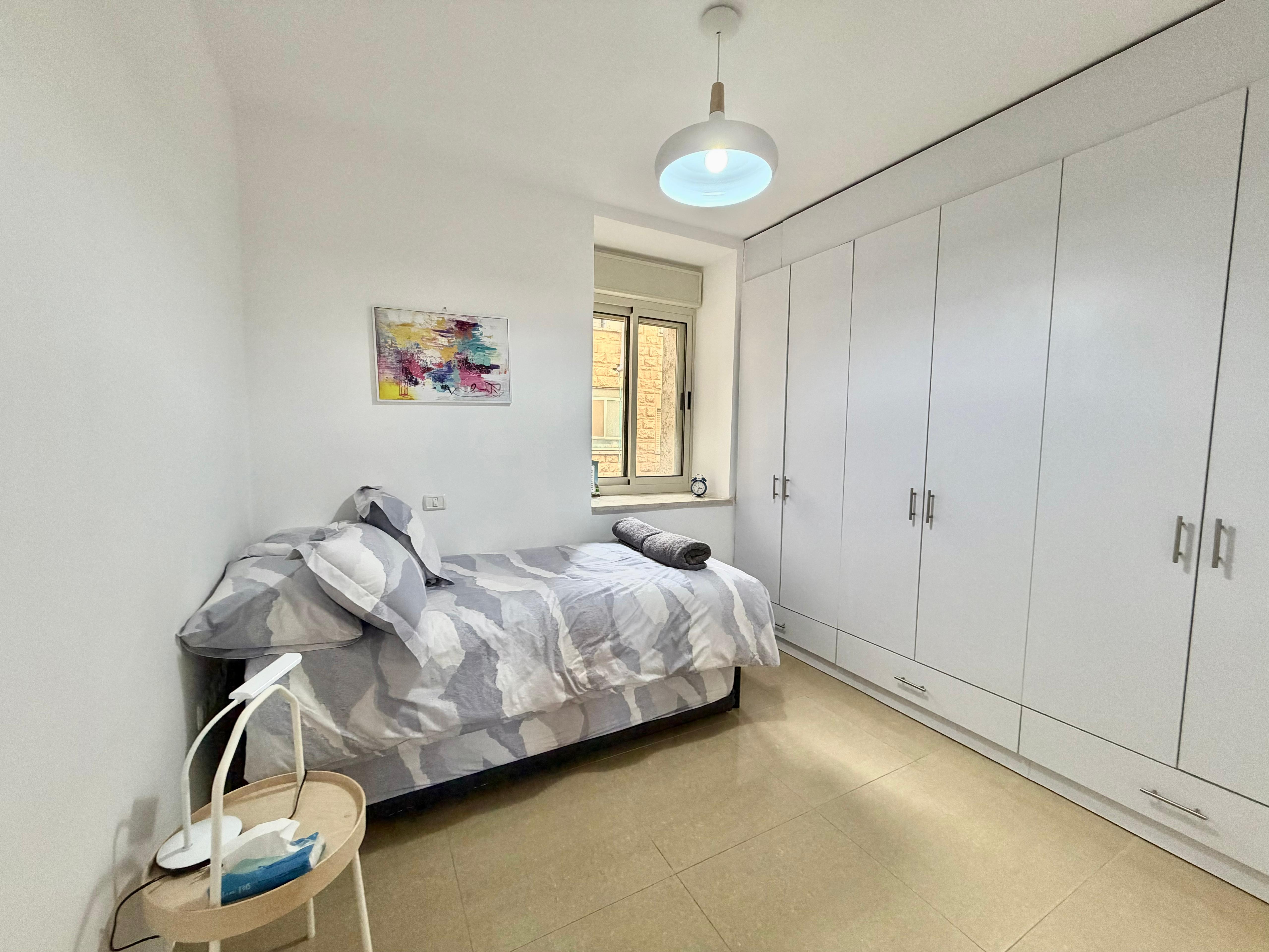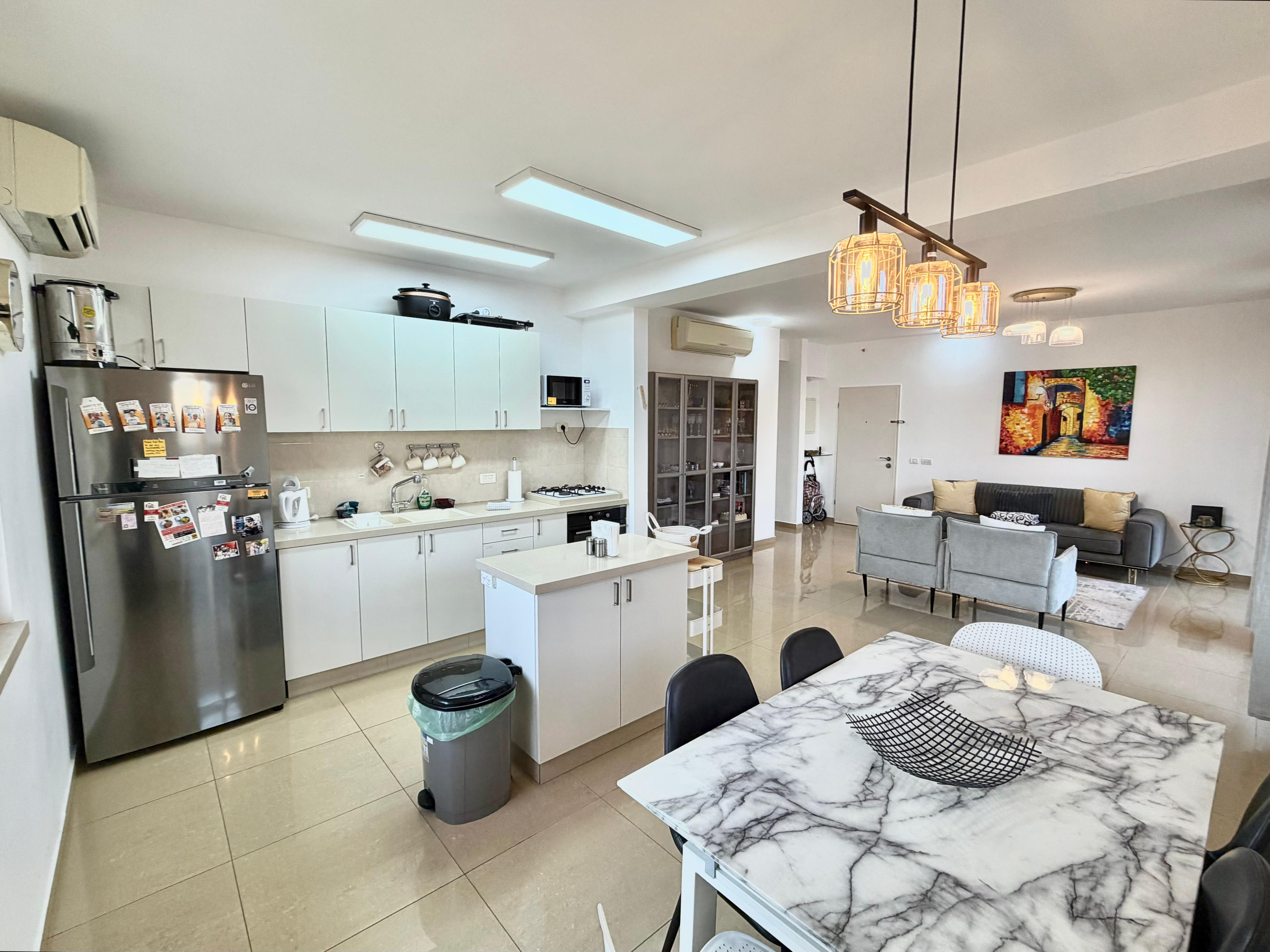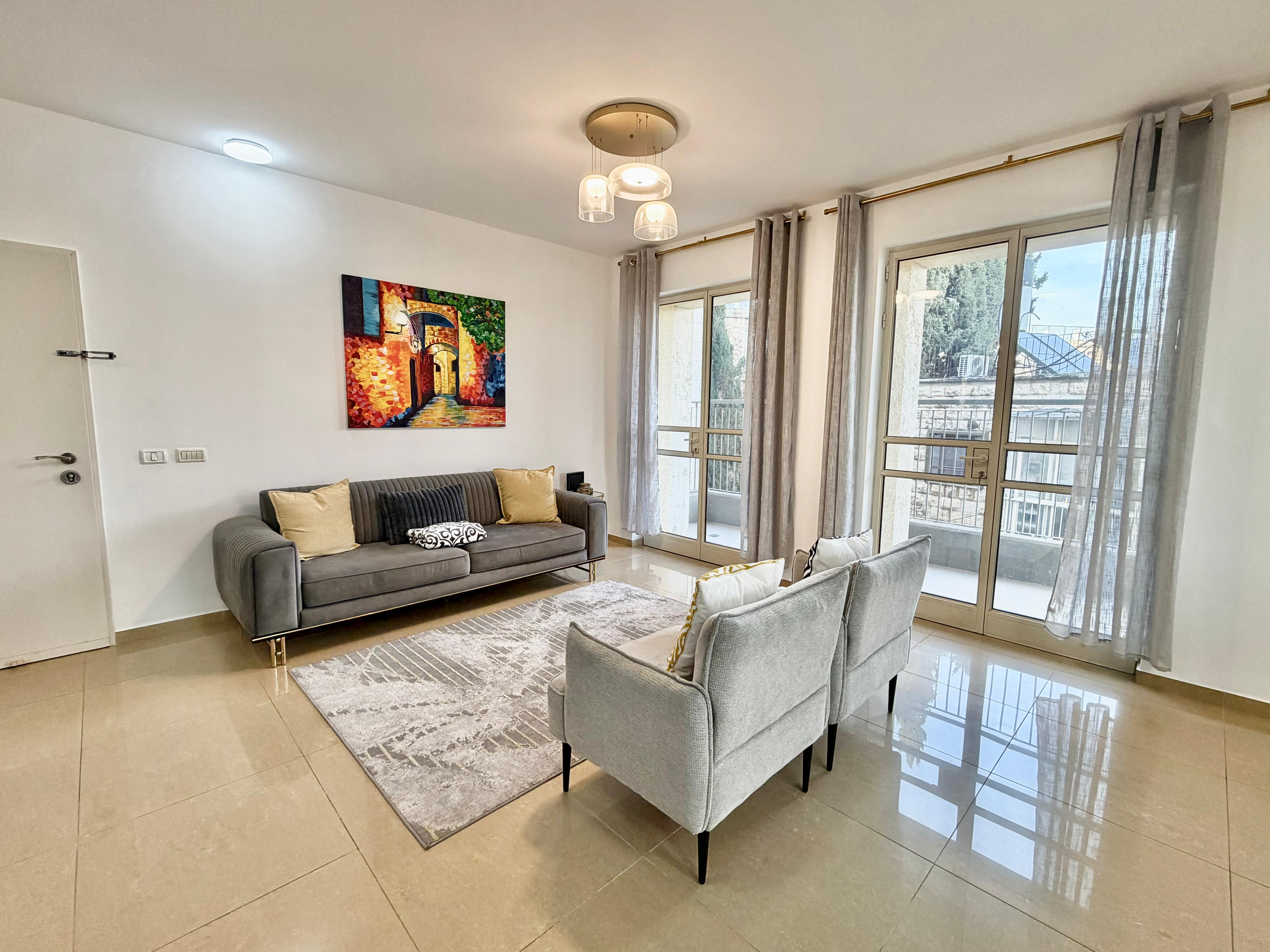 This freshly renovated, spacious and bright 3.5 bedroom apartment comes with 2 balconies and is located in Katamon. The main living area has an open floor plan with lots of sunlight from the balcony coming off of it.
